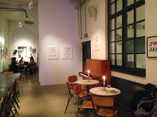 It's cool looking and, despite the high ceilings and minimalist decor, a cozy atmosphere with great coffee and food!